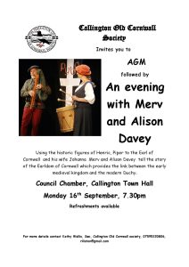 AGM followed by Merv and Alison Davey Songs and stories from Cornwall