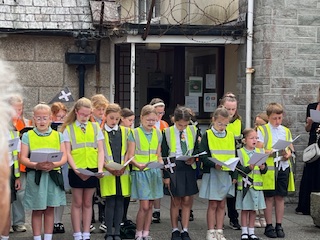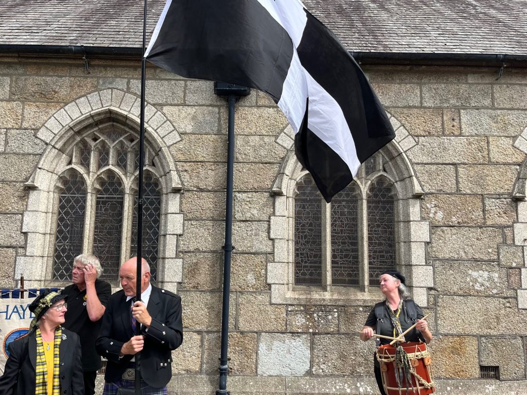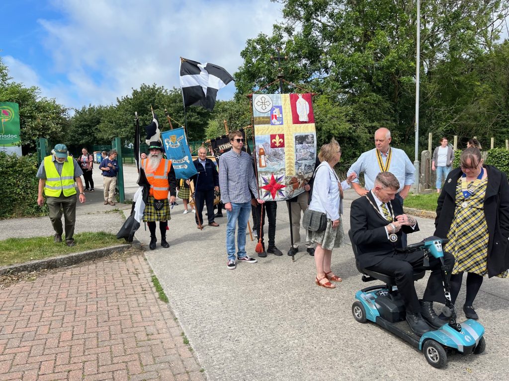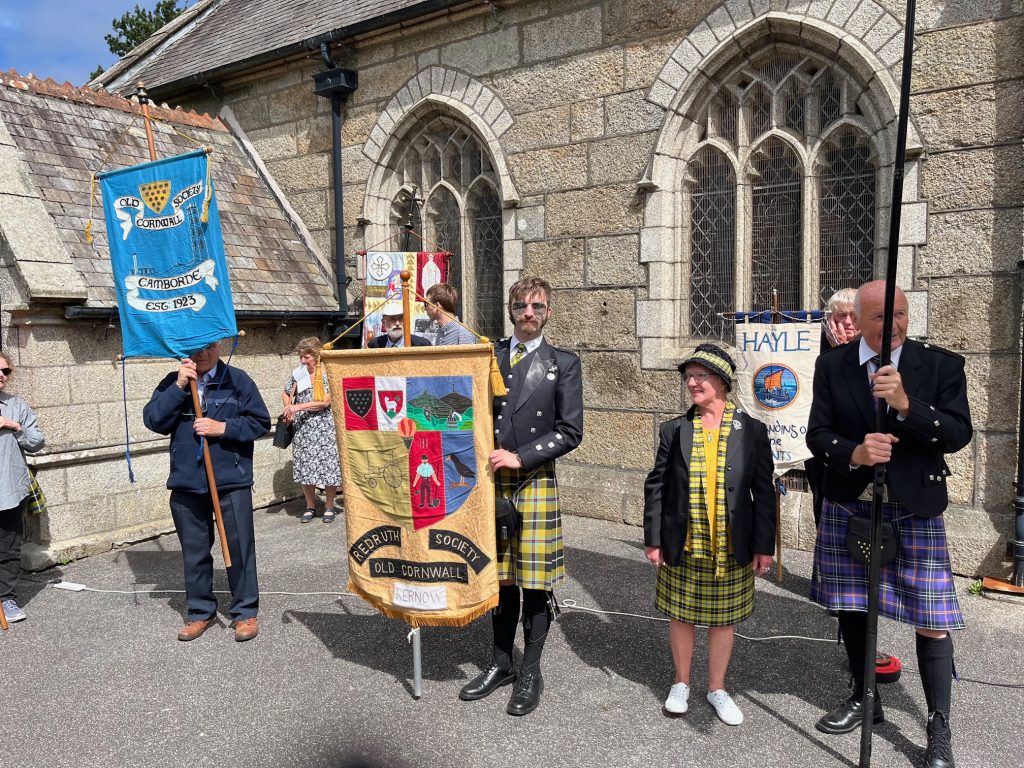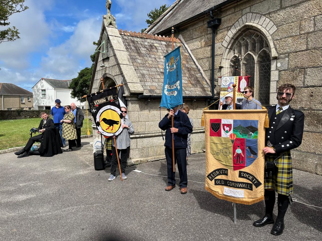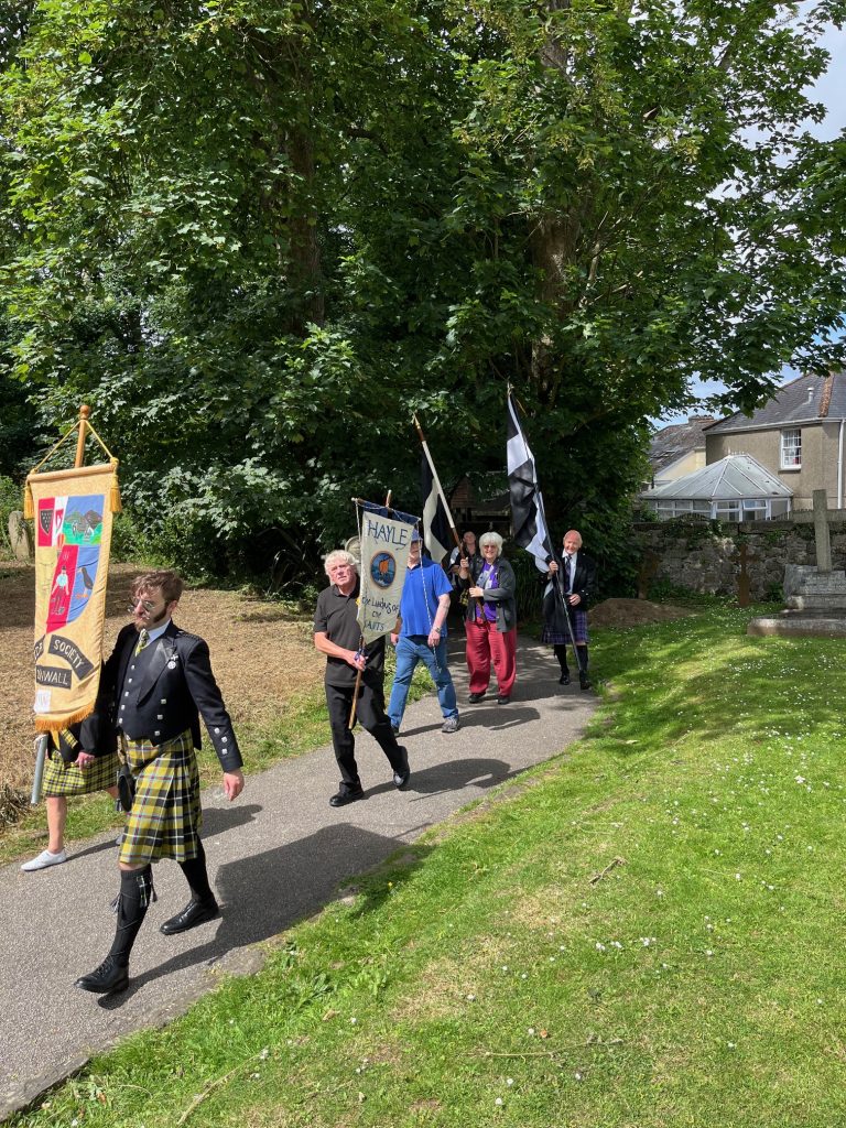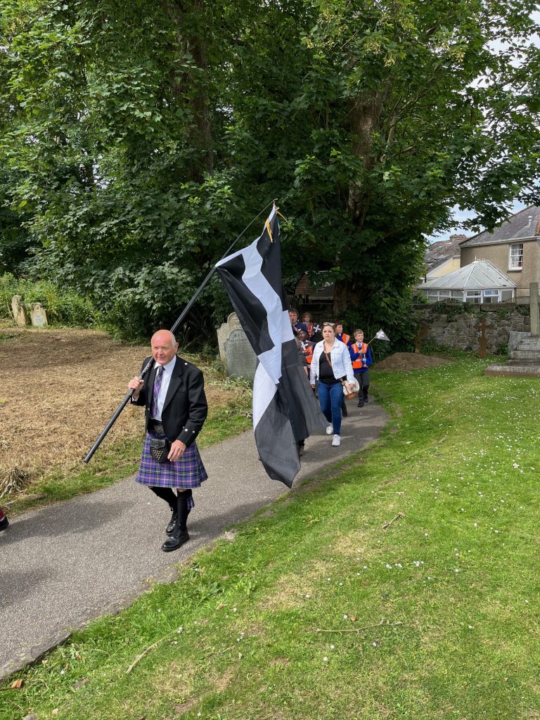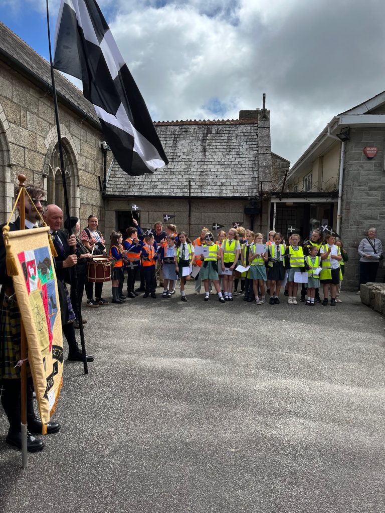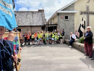 Camborne OCS and Agan Tavas worked with local school children to create a new 1497 Commemoration at Camborne. On 27th July the school children, accompanied by the Mayor, Grand Bard and other dignitaries paraded to the grounds of St Meriadoc’s Church where they performed “Baner Peran”.