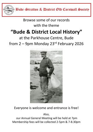Feb 23 2:00 pm - 7:00 pm Bude Stratton & District OCS – Display of Records The Parkhouse Centre Ergue-Gaberic Way, Bude Event Details Get Directions