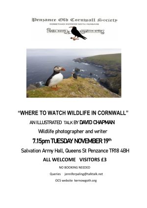 Talk: “Where To Watch Wildlife in Cornwall” – David Chapman