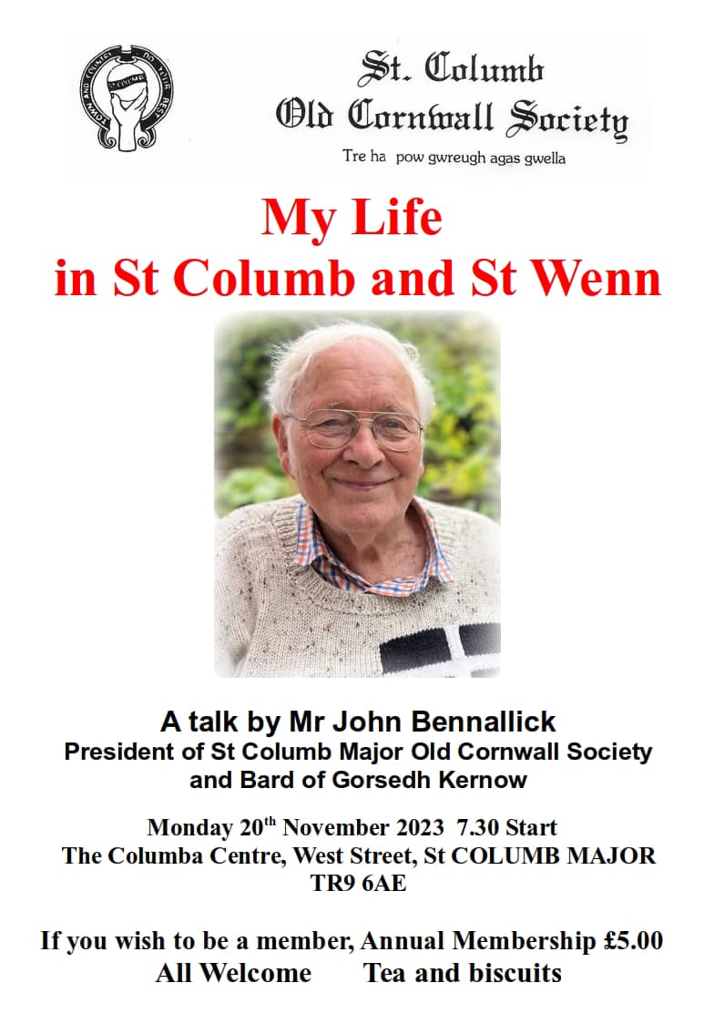 Luxulyan Memorial Institute Luxulyan, Bodmin, Cornwall, United KingdomAll welcome to attend, Members Free, Visitors £2 New Members welcome, annual subscription £6 Refreshments provided For further details, please see either the Luxulyan and District Old Cornwall Society or […]