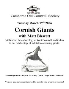 Welcome to the Camborne Old Cornwall Society webpages. We also have a Facebook page with our latest news and posts, please click the blue link for that page.