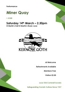 Saturday 14 March - AGM, and performance by “Miner Quay”