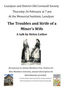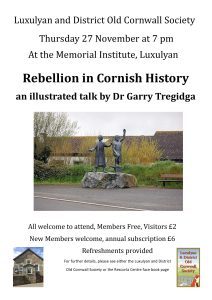 Welcome to the Luxulyan & District Old Cornwall Society webpages. We also have a Facebook page with our latest news and posts, please click the blue link for that page.