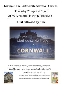 Thursday 23rd April - AGM followed by film "Travelling through Methodist Heritage in Cornwall"