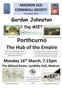 Annual subscription of our Old Cornwall Society is £15 with £3 for casual attendance.