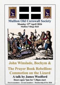 Monday 13th April - Talk: Winslade, Bochym & The Prayer Book Rebellion by James Woolford