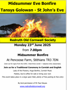 Tuesday 23rd June (TBC) – Midsummer Bonfire, Pencoose Farm, Stithians