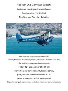 Society contact: Mrs Vanessa Moyle 01209 211469 vanessamoyle@aol.com