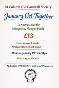Monday 19th January 6.30pm: January Get-Together @ Merrymoor, Mawgan Porth