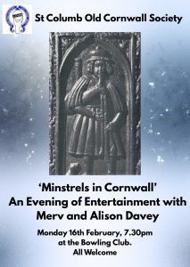 Monday 16th February - Minstrels in Cornwall. An Evening of Entertainment with Merv and Alison Davey