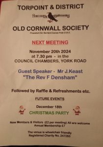 Welcome to the Torpoint Old Cornwall Society webpage.