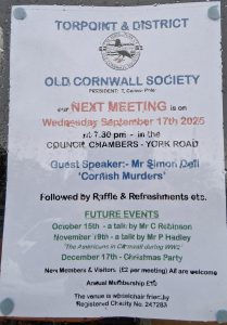Wednesday 17th September - Talk: Cornish Murders by Simon Dell