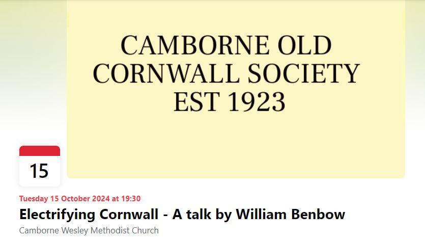 Welcome to the Camborne Old Cornwall Society webpages. We also have a Facebook page with our latest news and posts, please click the blue link for that page.